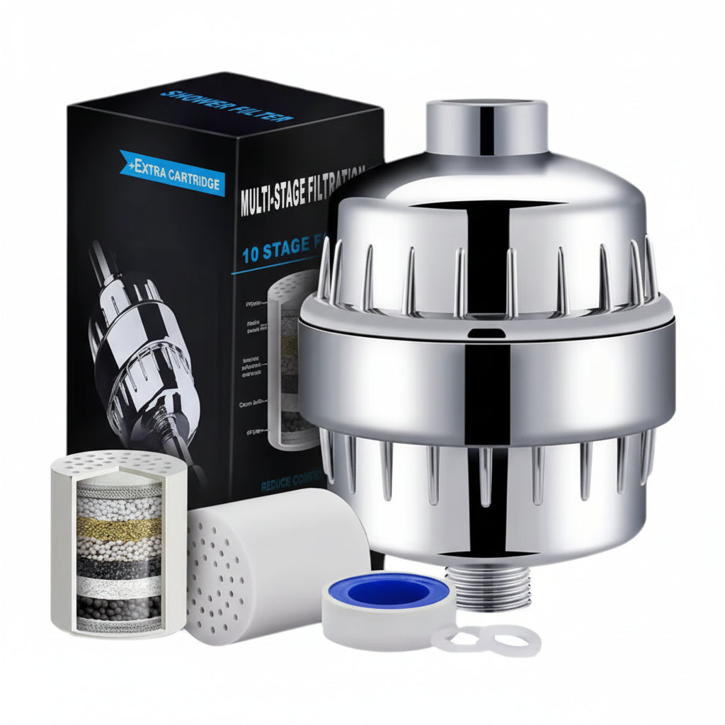 eFlowra 20-Stage Shower Water Softener turns everyday water into a cleaner, softer, skin-friendly experience — helping reduce breakouts, dryness, scalp discomfort, and damaged hair with every shower.